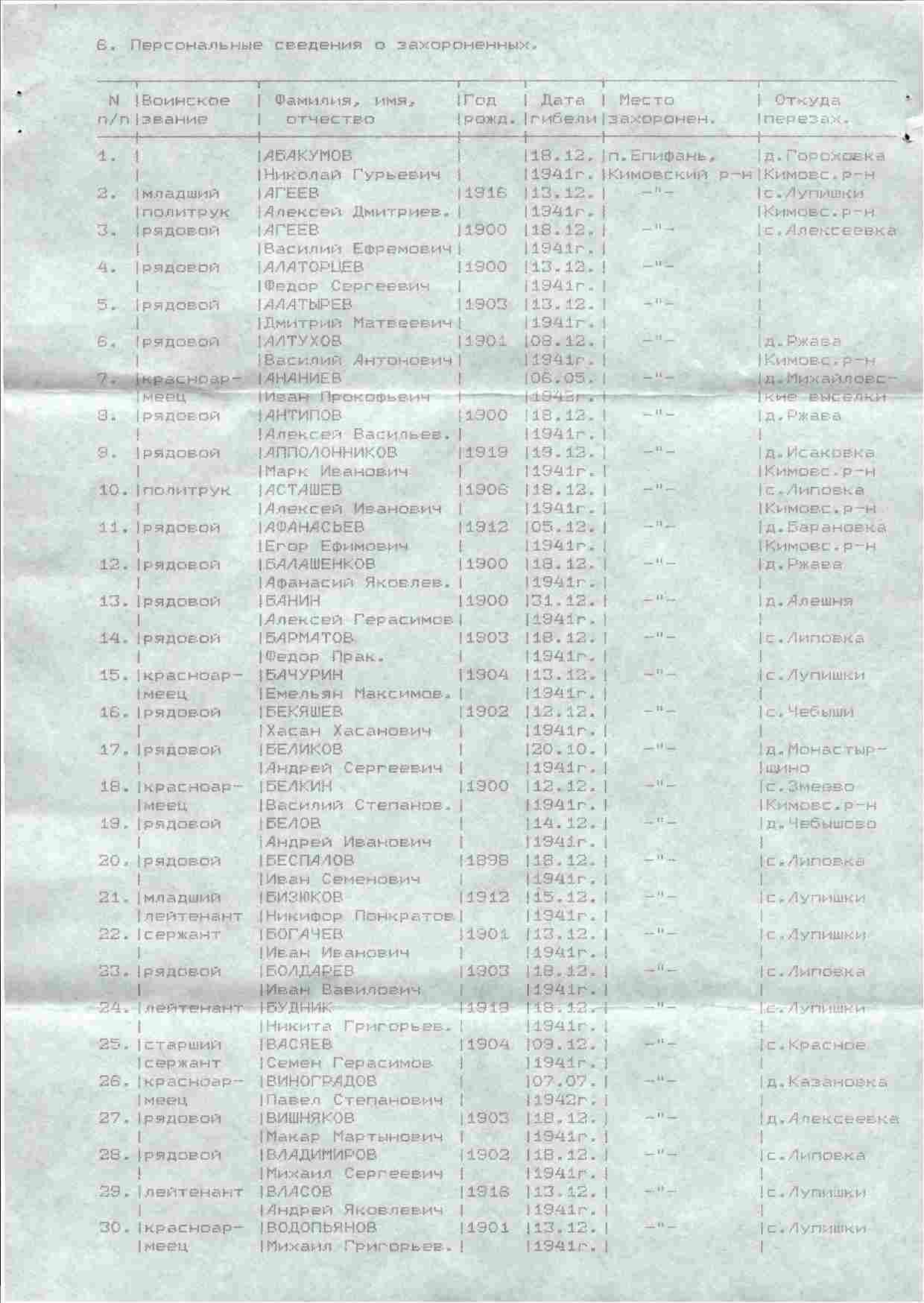 Похороненные в п.Епифань список №6 Прикрепленные файлы: