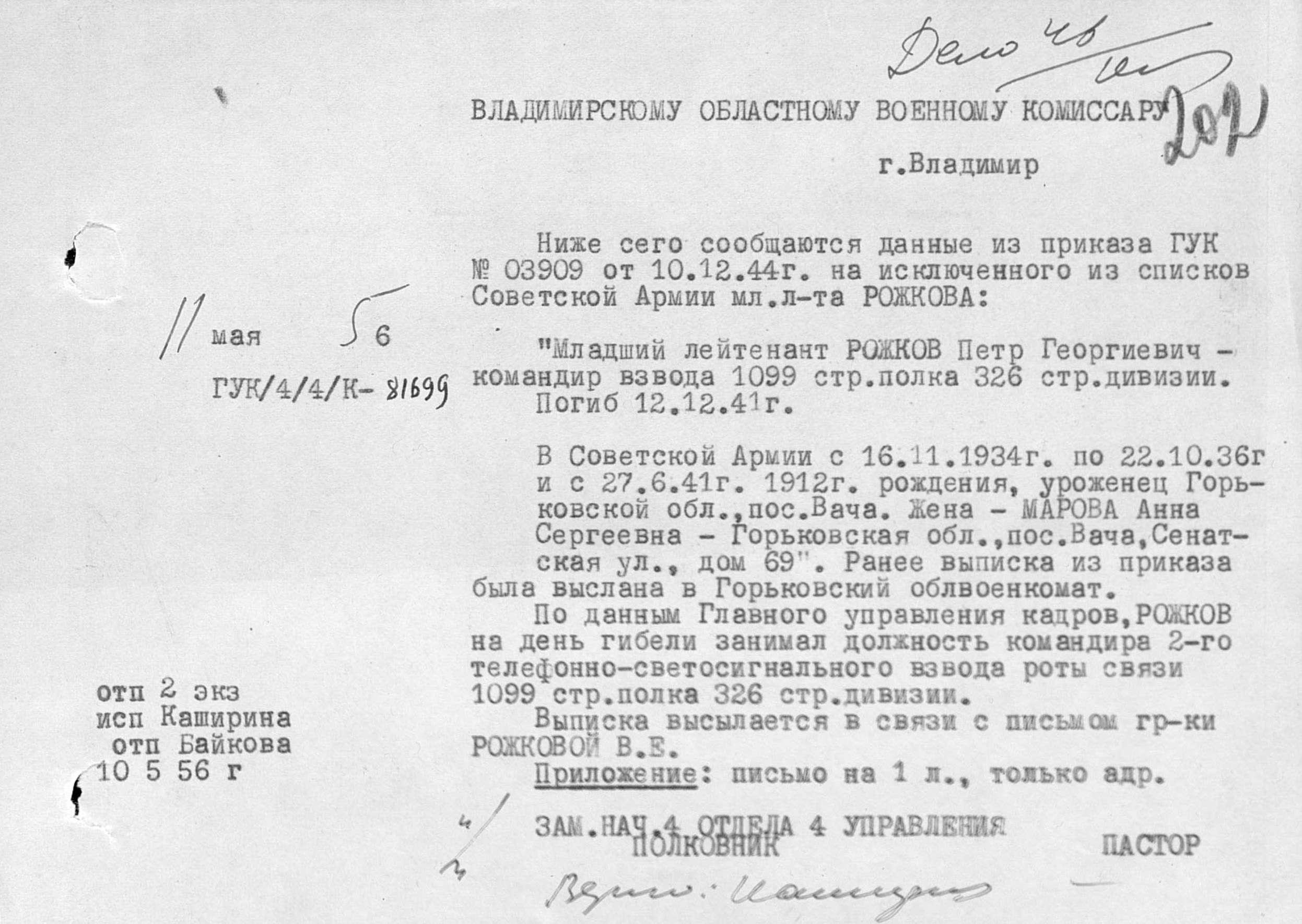 Младший лейтенант Рожков Петр Георгиевич - командир взвода 1099 стрелкового полка 326 дивизии Прикрепленные файлы: