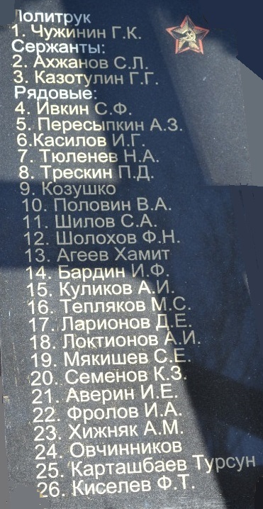 Валерий, имен нет! С ними были только знаки различия у одного старшего офицерского состава (капитана)и у другого младшего сержантского состава. Личных вещей практически не было. У капитана судя по состоянию останков были ранения не совместимые с жизнью, он один из 7 был в сапогах и то мне кажется не сняли из-за того, что один сапог был разворочен взрывом. Вообще в том районе почва очень кислая и агрессивная в костной ткани, от них остались, только крупные кости. | ||||