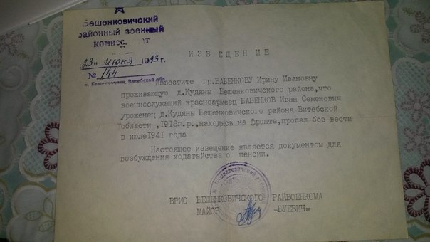 Вотинцева Татьяна: Куренков Виктор Иванович: Странное извещение!!! Виктор Иванович, это же копия. Вот документы, которые мне прислал военкомат Прикрепленные файлы:
