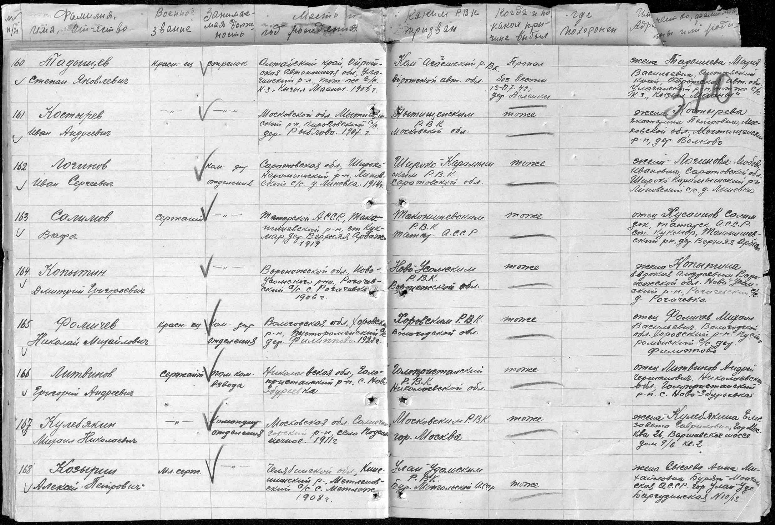 Куренков Виктор Иванович: Татьяна Николаевна, и в этом случае нужен заявитель!!!!! Согласна. Но и администратор может тоже помочь. Как Логинова Ивана СЕРГЕЕВИЧА устанавливали? Я нашла на ОБД Логинова Ивана Сергеевича 1914 года рождения. Он пропал без вести: Фамилия Логинов Имя Иван Отчество Сергеевич Дата рождения/Возраст __.__.1914 Место рождения Саратовская обл., Широко-Карамышский р-н, с/с Липовский, д. Липовка Дата и место призыва Широко-Карамышский РВК, Саратовская обл., Широко-Карамышский р-н Последнее место службы 342 сд Причина выбытия пропал без вести Дата выбытия 13.07.1942 Название источника информации ЦАМО Номер фонда источника информации 58 Номер описи источника информации 818883 Номер дела источника информации 989 Место, где он пропал без вести сложно прочитать: то ли Таленки, то ли Паленки: Прикрепленные файлы: