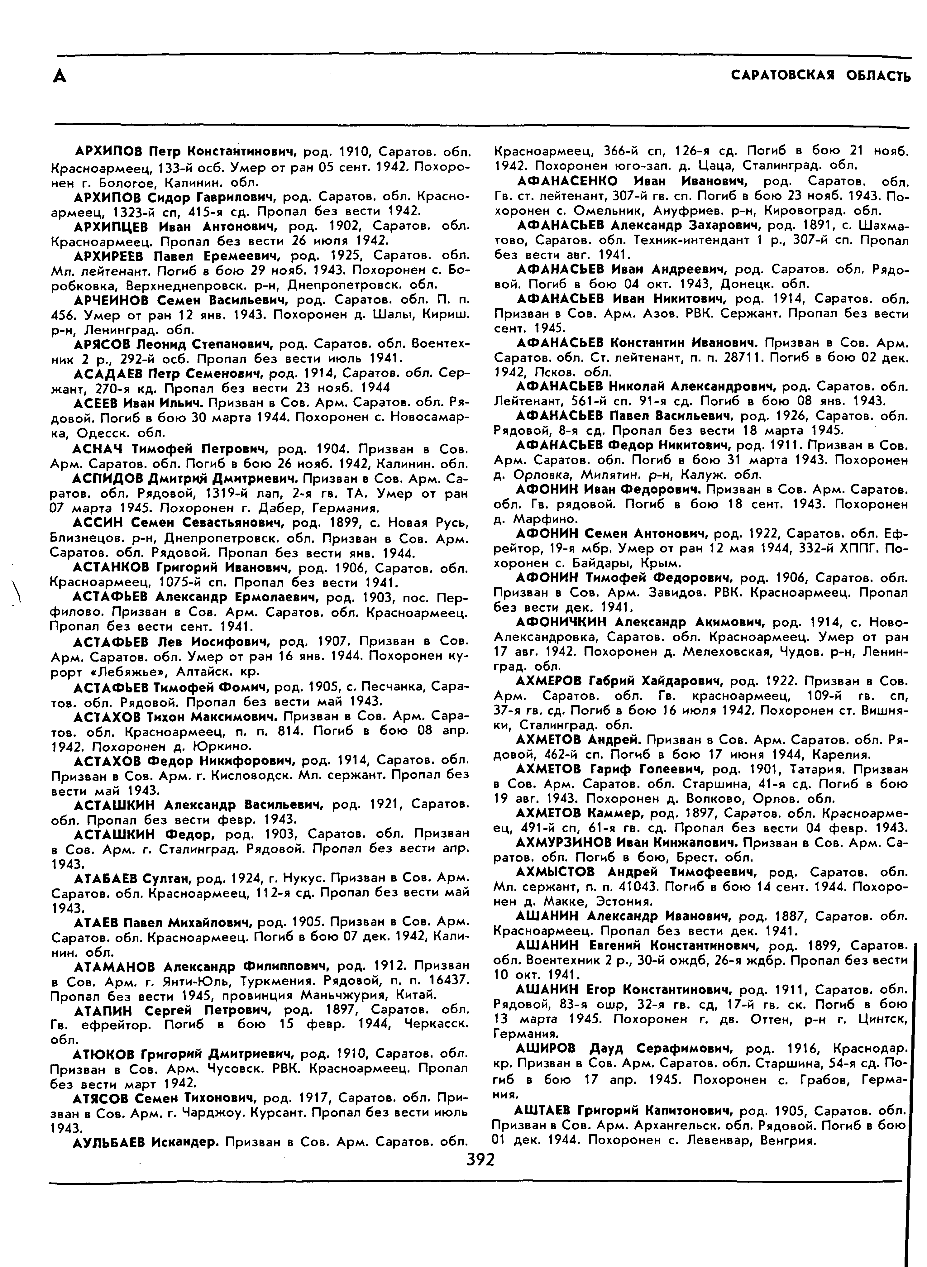 Вот ещё один пример: Фамилия Мишин Имя Яков Отчество Григорьевич Дата рождения/Возраст __.__.1900 Место рождения г. Пенза Дата и место призыва Шемышейский РВК, Пензенская обл., Шемышейский р-н Последнее место службы 32 Гв. сд Воинское звание гв. красноармеец Причина выбытия умер от ран Дата выбытия 14.03.1945 Название источника информации ЦАМО Номер фонда источника информации 58 Номер описи источника информации 18003 Номер дела источника информации 563 Захоронен там же, г Цинтен. Прикрепленные файлы: