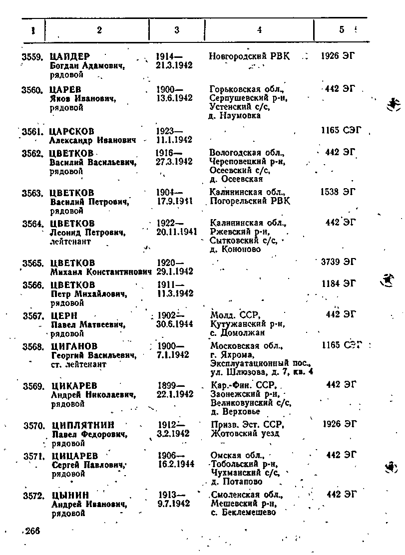 Здравствуйте, друзья! Спешу выразить благодарность Татьяне и Виктору!!! Документы, размещенные на форуме я видел и, как мне кажется, тут однофамильцы моего деда. В те далекие времена наличие полных однофамильцев в деревнях было не редкость. Вот настоящий список потерь Калязинского района, где есть упоминание о Цветкове Михаиле Константиновиче 1902 г.р. без вести пропавшего в сентябре 1941 года. ![]() ![]() Редактировалось: 3 раз (Последний: 30 января 2014 в 21:11) | ||||