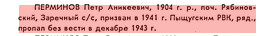 Уважаемые поисковики! Помогите, пожалуйста, в поисках моего деда Перминова Петра Аникеевича 1903 года рождения, пропавшего в ВОВ 1941-1945гг Прикрепленные файлы: