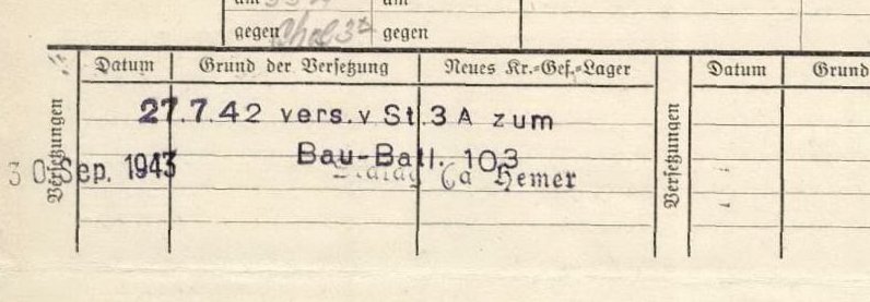 Здравствуйте, Виктор Иванович! Сравните, пожалуйста, две записи (прикрепленные файлы). Из них следует, что Куприянов находился в VI округе (шталаг 6А)с 30 сентября 1943 года и если я правильно перевела, то это СТРОИТЕЛЬНЫЙ БАТАЛЬОН 103 ??? Противоречие с данными ОБД "Мемориал"- шталаг IIIА!!! А вот с рабочими отрядами совсем тупик (из карточки военнопленного) Буду очень благодарна, если что-либо поясните. 21 февраля в школе проводим мероприятие, на котором дочери Куприянова П.Я. будем передавать найденные документы | ||||