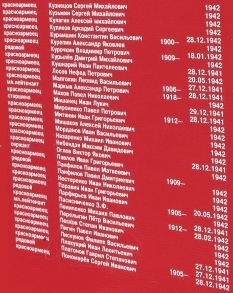 Появляется другая дата гибели, но я уверен что она ( дата ) одна. Просто описка. 02.1942 и 12.1942 . Число и год одни 28 число 1942 год. С уважением, Валерий Попов | ||||