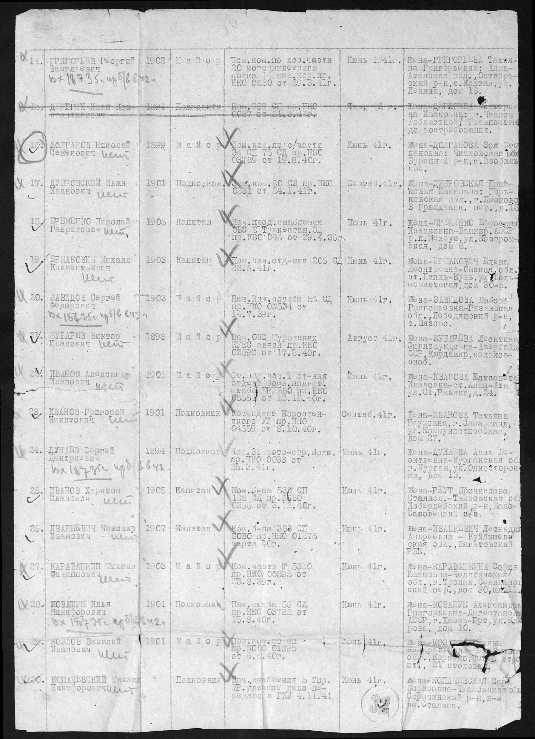 Информация из донесения о безвозвратных потерях Фамилия Каравашкин Имя Михаил Отчество Филиппович Дата рождения/Возраст __.__.1903 Воинское звание майор Причина выбытия пропал без вести Дата выбытия __.06.1941 Название источника информации ЦАМО Номер фонда источника информации 33 Номер описи источника информации 11458 Номер дела источника информации 190 Он так и остался пропавшим без вести. Прикрепленные файлы: