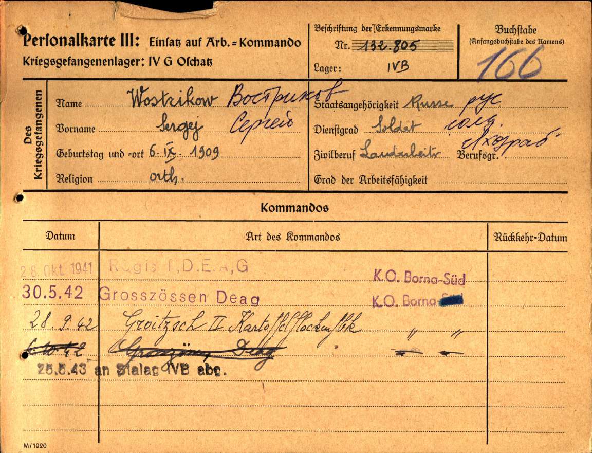 В обд есть документы два донесения из плена на Вострикова Сергея 6.9.1909