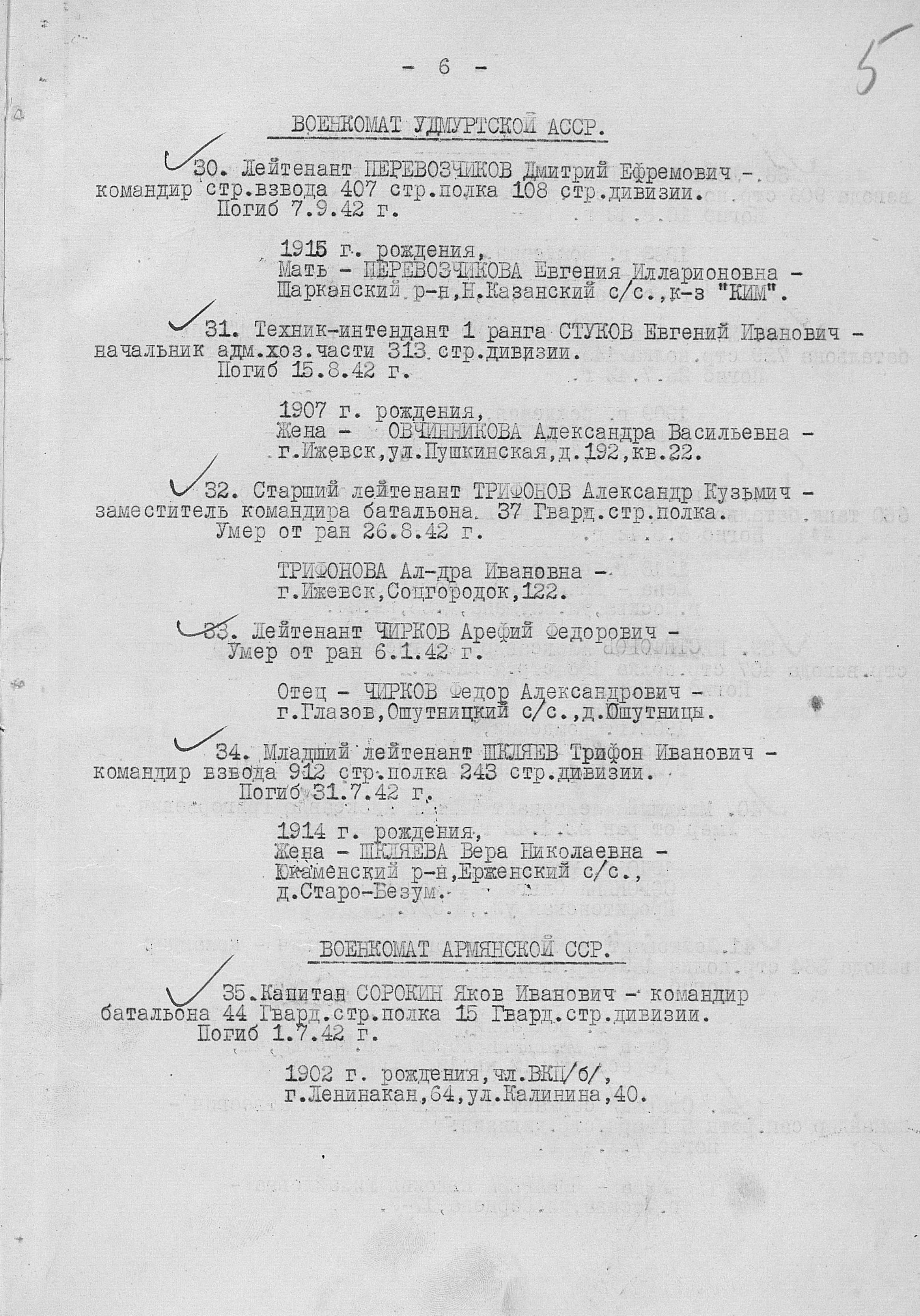 Елена, прошу извинить меня за описку в написании первой буквы отчества Трифонова Александра Кузьмича. В приведенных ссылках отчество указано верно как и все остальные данные. |