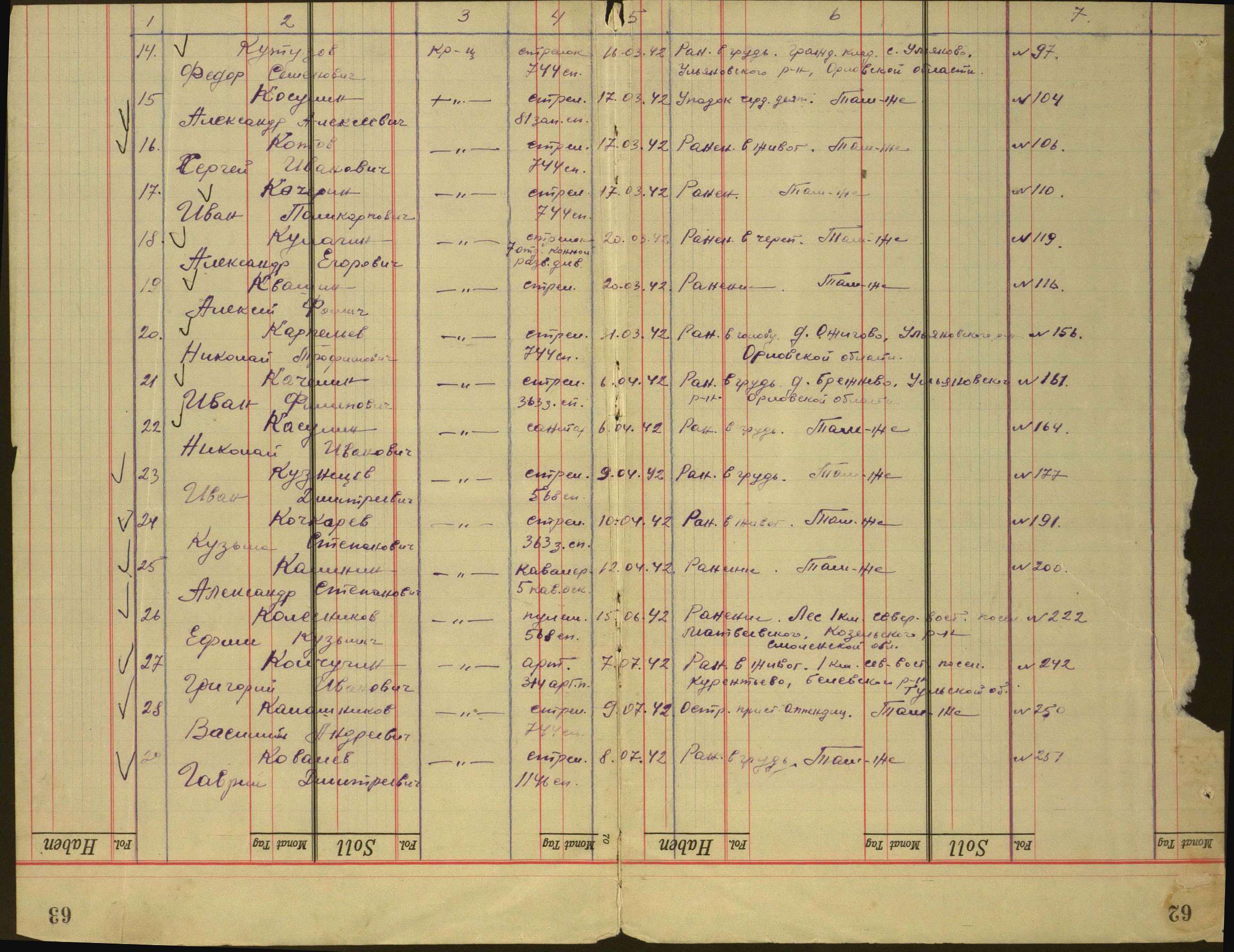 Нашел еще одно донесение 226 ОМСБ. Дата документа 01.03.1942 - 10.1943. Здесь утверждается, что 1. До 18.07.1942 бойцов захоранивали в Курентяево. 21. При этом 21.07.1942 Каширский Кузьма Иванович умирает в поселке Матвеевский. Прикрепленные файлы: