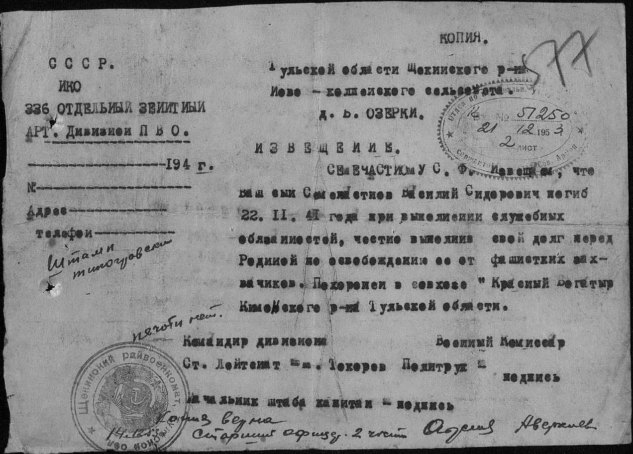 Добавлю еще служивших в 336 ОЗАД. У всех разная судьба. Орехов А.В. призван Сталиногорским ГВК в июле 41 г.. Попал в плен (освобожден) под Сталиногорском. https://www.obd-memorial.ru/html/info.htm?id=65100482 Басак М.И. Попал в плен (освобожден). https://www.obd-memorial.ru/html/info.htm?id=80640042 http://www.memory-book.com.ua/people/book/50?page=352 Ершов С.П. осужден. https://www.obd-memorial.ru/html/info.htm?id=50880778 Бобров С.И. призван Лаптевским РВК, Тульской области. Попал в плен (освобожден). https://www.obd-memorial.ru/html/info.htm?id=81498810 Бобылев К.И. Попал в плен (освобожден). https://www.obd-memorial.ru/html/info.htm?id=65475443 Глазков С.С. призван Щекинский РВК, Тульской обл. Осужден. https://www.obd-memorial.ru/html/info.htm?id=50536165 Баев Е.В. призван Одовский РВК, Тульской обл. Попал в плен (освобожден). https://www.obd-memorial.ru/html/info.htm?id=81499271 | ||||