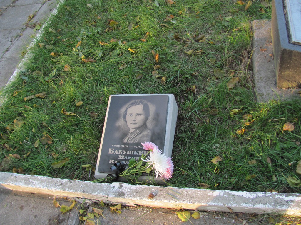 Спасибо, Дмитрий! Спасибо и Вашей супруге, которая Вас понимает и поддерживает! Сегодня же сообщу родственникам Марии и передам информацию в 49 школу, где училась Мария Бабушкина. Да, я тоже могу теперь сказать, что моё участие в деле увековечения Марии завершилось. Плита с именем и фото - замечательная. Жаль, что родственники Марии вряд ли смогут посетить могилу. Марина Ивановна (племянница) ходит с палочкой (у неё инвалидность), мы с ней уже обсуждали этот вопрос. Но, думаю, что настанет день и они сделают это - приедут поклониться праху своей тети, которая жизнь свою отдала за их будущее. Еще раз, Дима, спасибо за всё! Спасибо украинскому народу, кто помнит и чтит память солдат, погибших на днепропетровской земле. Надеюсь, что связь мы будем поддерживать. | ||||||||||||||||