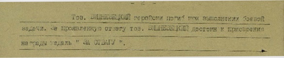 30 сентября 41 г. согласно оперсводок 61 Армии все части Армии проводили на своих участках силовую разведку в целях захвата пленных. Успешный проход разведчиков обеспечивало в том числе и прикрытие дымовой завесой. Из наградного листа Вишневецкого. " В ночь на 30 число получил ответственное задание по организации дымопуска из спецмашин АРС. Тов. Вишневецкий повел машины ближе к исходному положению дымопуска к переднему краю противника. машины шумом моторов обнаружили себя и противник открыл по машинам сильный пулеметный и минометный огонь. Тов. Вишневецкий не обращая внимания на огонь для лучшего выполнения задачи, продолжал выдвигать машины ближе к переднему краю противника и обеспечил благоприятное исходное положение машин для дымопуска. Тов. Вишневецкий героически погиб при выполнении боевой задачи." Машины АРС находились в 149 СД. Согласно ЖБД 149 СД . Силовую разведку 30.09.42 г. проводил 479 СП 149 СД ( в том числе и дивизион РСМ) в районе перекрестка восточнее Блинов. В 2.00 группа сосредоточилась в траншеях южнее 1 км Железница. https://pamyatnaroda.mil.ru/jbd/110073204/ Тоже самое в ЖБД 61 А. Редактировалось: 1 раз (Последний: 13 марта 2016 в 19:46) | ||||