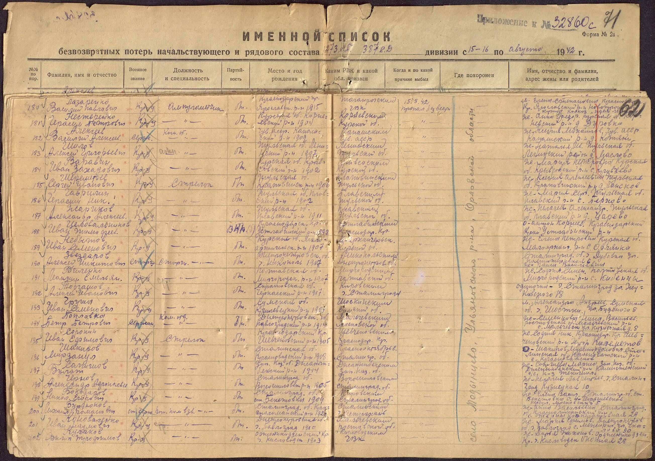 Как следует из донесения о безвозвратных потерях, за два дня 15-16 августа потери дивизии были колоссальными. Более тысячи человек попали в плен с 11 по 18 августа. | ||||