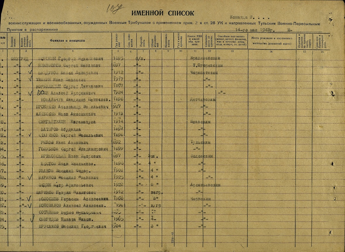 Там же приложено изображение списка, в котором указано, что прадед не годен к воинской службе, но годен к физтруду. Как узнать его дальнейшую судьбу, подскажите пожалуйста?