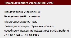 Считался убитым в деревне Руднево, Ясногорского района. На деле вывезен в госпиталь в Тулу, где и умер. https://obd-memorial.ru/html/info.htm?id=50620283 https://obd-memorial.ru/html/info.htm?id=53998475 https://obd-memorial.ru/html/info.htm?id=5969458 4.