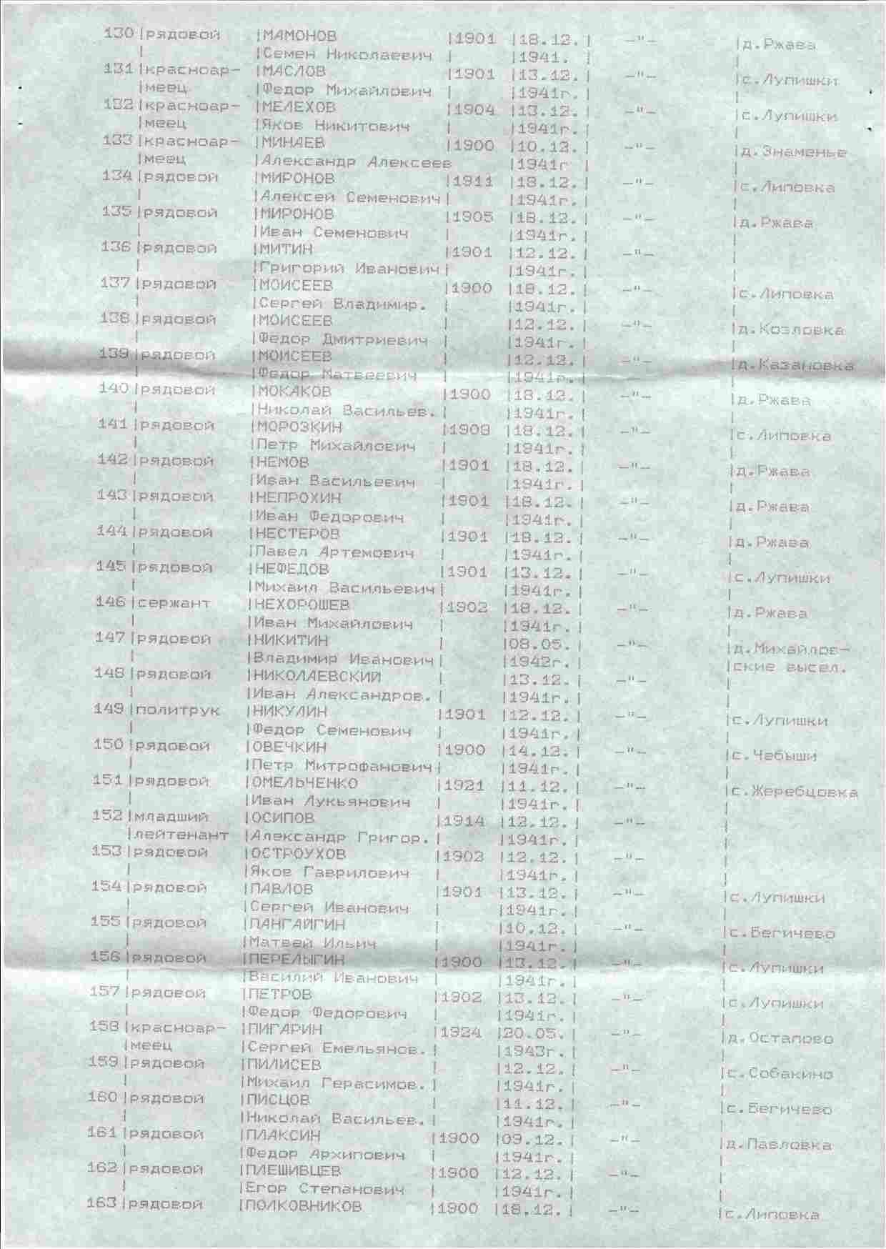 Список погибших в: д.Крутое,с.Мещерино,с.Камынино,Вицынские Выселки,с.Синявино,д.Боняково. Прикрепленные файлы: