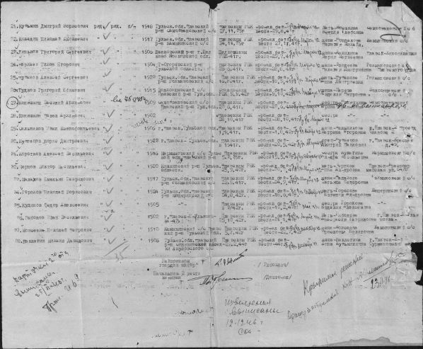 Наталия. Все больше и больше людей, которые устанавливают судьбу своих родственников в ВОВ. Многие читают этот сайт. Поэтому, для тех, кто захочет самостоятельно искать, темы этого форума – руководство к действию. В вашем случае имеем один документ – послевоенное донесение Плавского РВК о безвозвратных потерях жителей этого района. На 2-х листах. Внимательно прочитайте строку по каждому. У меня к вам вопрос, когда дед пропал, и когда от него было последнее письмо? Рекомендую прочитать здесь на форуме тему «Строменко», эта ситуация ближе к судьбе Пархаева. Остались его фото или документы? С уважением Виктор Иванович Куренков | ||||
