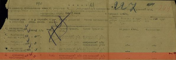 Пока вот что удалось найти по призывной команде: Информация из донесения о безвозвратных потерях Фамилия Амелькин Имя Михаил Отчество Никифорович Дата рождения/Возраст __.__.1896 Место рождения Тульская обл., Одоевский р-н, д. Крупец Дата и место призыва Одоевский РВК, Тульская обл., Одоевский р-н Последнее место службы ВТ Приморской ОГ Воинское звание красноармеец Причина выбытия осужден Дата выбытия 14.09.1942 Название источника информации ЦАМО Номер фонда источника информации 58 Номер описи источника информации 818883 Номер дела источника информации 771 Последнее место службы 260 сп. (ВВ НКВД) 14.09 1942 года осуждён к 10 годам ИТЛ. Фамилия Алешин Имя Егор Отчество Иванович Дата рождения/Возраст __.__.1907 Место рождения Тульская обл., Одоевский р-н Дата и место призыва Одоевский РВК, Тульская обл., Одоевский р-н Последнее место службы 222 сд Воинское звание мл. сержант Причина выбытия убит Дата выбытия 03.03.1943 Название источника информации ЦАМО Номер фонда источника информации 58 Номер описи источника информации 18001 Номер дела источника информации 722 пулеметчик 457 сп. Захоронен в д. Ильинское Темкинского района Смоленской области. Редактировалось: 2 раз (Последний: 18 февраля 2014 в 15:29) | ||||