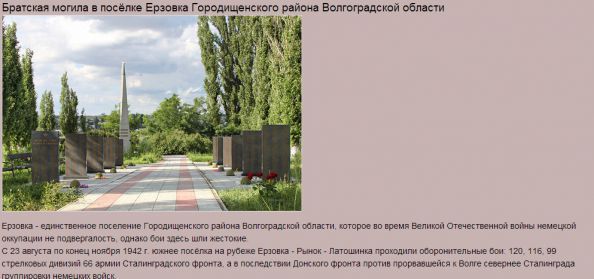 Место захоронения Городищенский р-н, р.п. Ерзовка
