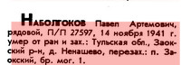 В Ненашево изначально было захоронено 24 человека. Ин них 20 умерло в медсанбате и эти люди были перезахоронены в Симоново. 21-й Калиберда Гавриил также умер в медсанбате, но был перезахоронен в Заокское. 22-й Лубянский Петр Александрович погиб сразу. Похоронен в Ненашево и перезахоронен в Заокское. 23-й Чужинин Григорий Кузьмич числится перезахороненным из Ненашево, но есть донесение, которое гласит, что он погиб сразу в Симоново. 24. Наболгоков Павел Артемьевич. Так же умер от раз, но в ОБД "Мемориал" где это зафиксировано он там под фамилией Паболгоков Павел Артемович. Так же перезахоронен в Симоново из Ненашево и умер от ран. Хотя документа из медсанбата не найдено, но условно он 21-й. Редактировалось: 5 раз (Последний: 30 марта 2014 в 11:39) С уважением, Валерий Попов | ||||