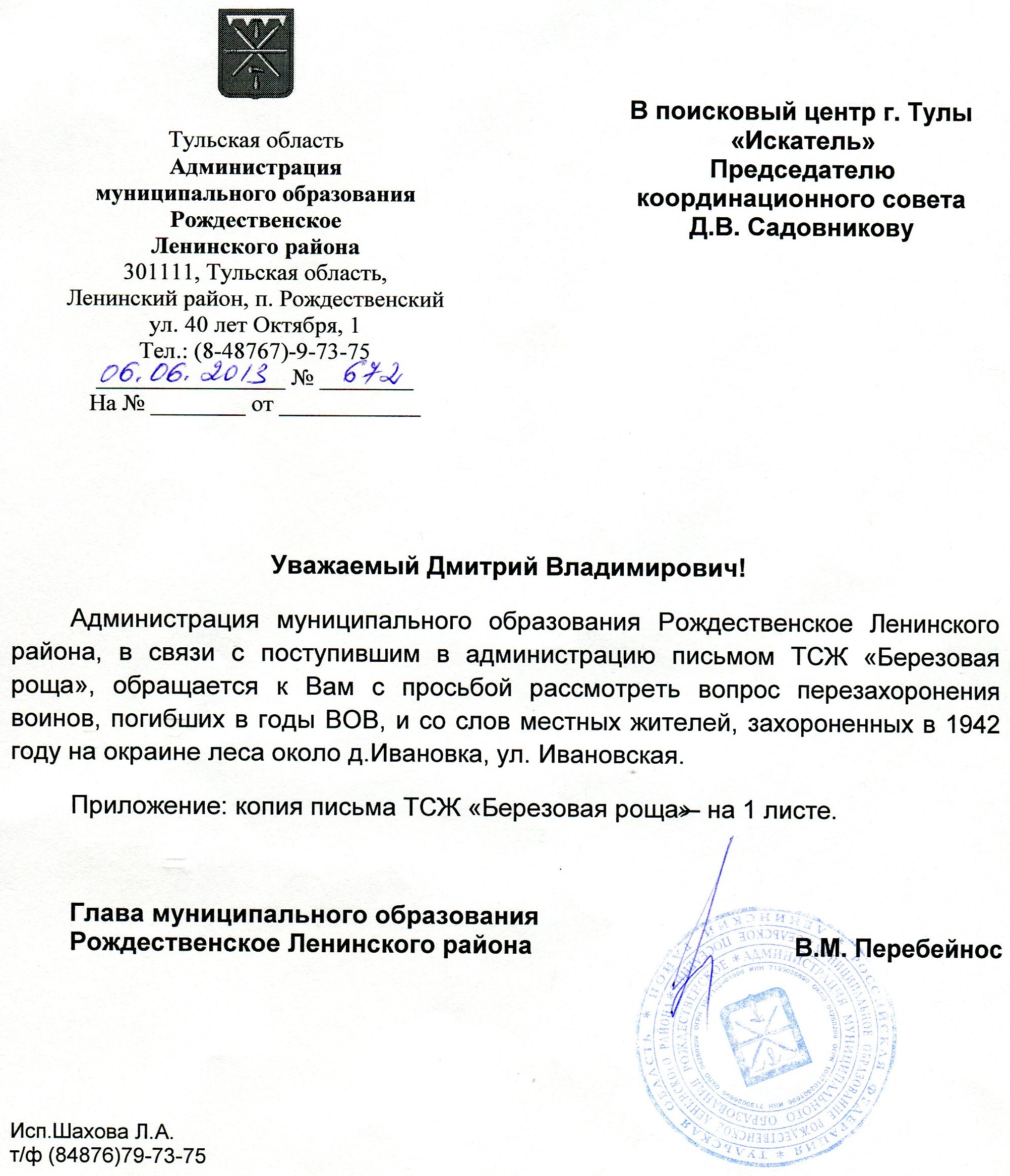 К нам на сайт обратились жители поселка Ивановка вот с таким письмом:Уважаемые поисковики, просим Вас связаться сжителями д. Ивановка, Ленинского р-на. В нашей деревне есть захоронение двух или нескольких солдат с 1942 года. Похоронил этих солдат житель д. Горельские Выселки и на данный момент он и его родственники, который ухаживали за могилой уже умерли. Нам хотелось бы выяснить кто здесь похоронен? И что с этой могилой нужно делать все дело в том, что раньше здесь было поле, а сейчас выросла целая деревня и могила оказалась в ее центре? Помогите, пожалуйста мы готовы с Вами сотрудничать.Я связался с ними, и мы договорились, что как только будут готовы все документы, мы начнем работу.На днях документы были готовы. Прикрепленные файлы: