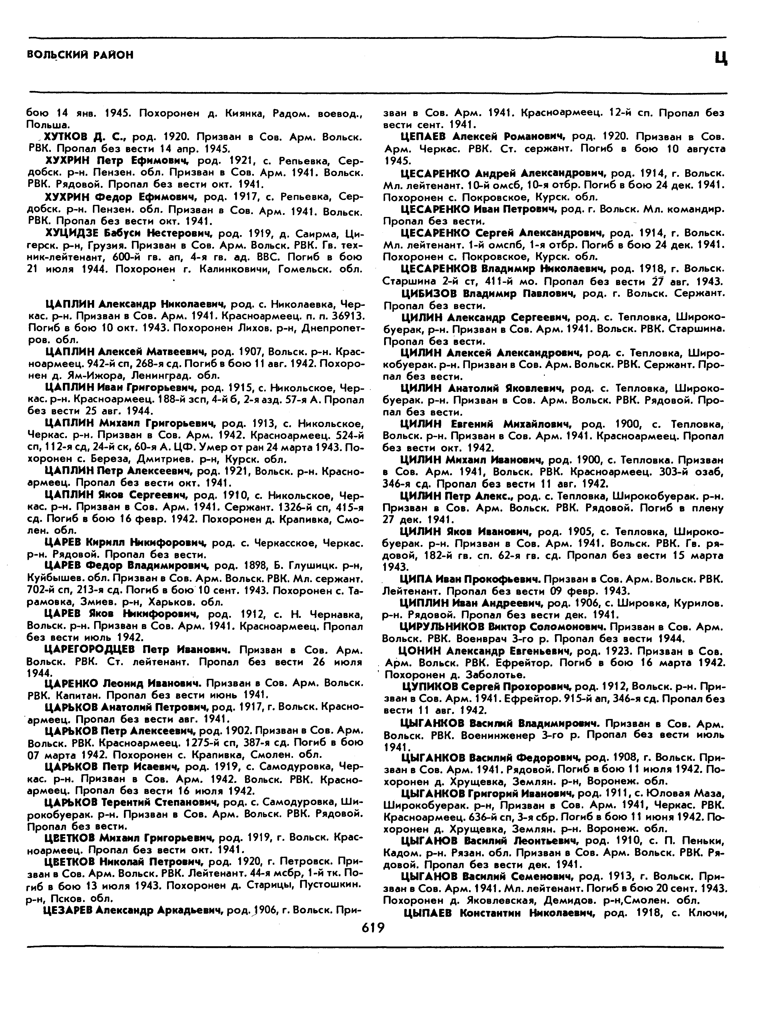 Вот ещё один вариант: Фамилия ЦАРЬКОВ Имя Петр Отчество Алексеевич Дата рождения/Возраст __.__.1902 Дата выбытия 07.03.1942 Название источника информации Книга памяти. Саратовская область. Том 3 Захоронен в деревне Крапивка Смоленской области. Прикрепленные файлы: