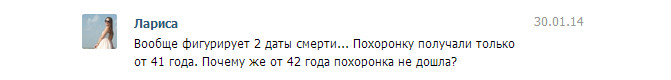 Отмечу, что по Пономаренко Петру Максимовичу фигурирует две даты смерти. Я общался с заявителем (Ларисой Пономаренко) в Контакте). Редактировалось: 1 раз (Последний: 17 марта 2014 в 23:44) С уважением, Валерий Попов |