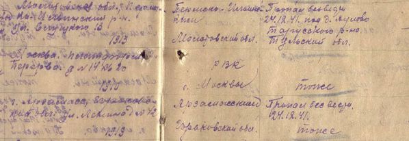 Для этого и надо подключть Сергея.Точно установить место нахождение деревень на современной карте Калужской области!!!!! Плавский район к этому случаю отношения не имеет, как и современная Московская А вот еще два воина, из одной части с Митрофановым, которые, как и он пропали с ним в один день 24.12 41 г. Информация из донесения о безвозвратных потерях Фамилия Шилоносов Имя Иван Отчество Петрович Дата рождения/Возраст __.__.1913 Место рождения Молотовская обл., Пермско-Ильинский р-н, ул. Слуцкого, 13 Дата и место призыва Пермско-Ильинский РВК, Молотовская обл., Пермско-Ильинский р-н Последнее место службы отд. 26 бр. Воинское звание ст. сержант Причина выбытия пропал без вести Дата выбытия 24.12.1941 Информация из донесения о безвозвратных потерях Фамилия Поляков Имя Василий Отчество Гаврилович Дата рождения/Возраст __.__.1910 Место рождения г. Москва, платформа Перерва, 14-28 Дата и место призыва Московский ГВК, Московская обл., г. Москва Последнее место службы отд. 26 бр. Воинское звание красноармеец Причина выбытия пропал без вести Дата выбытия 24.12.1941 |