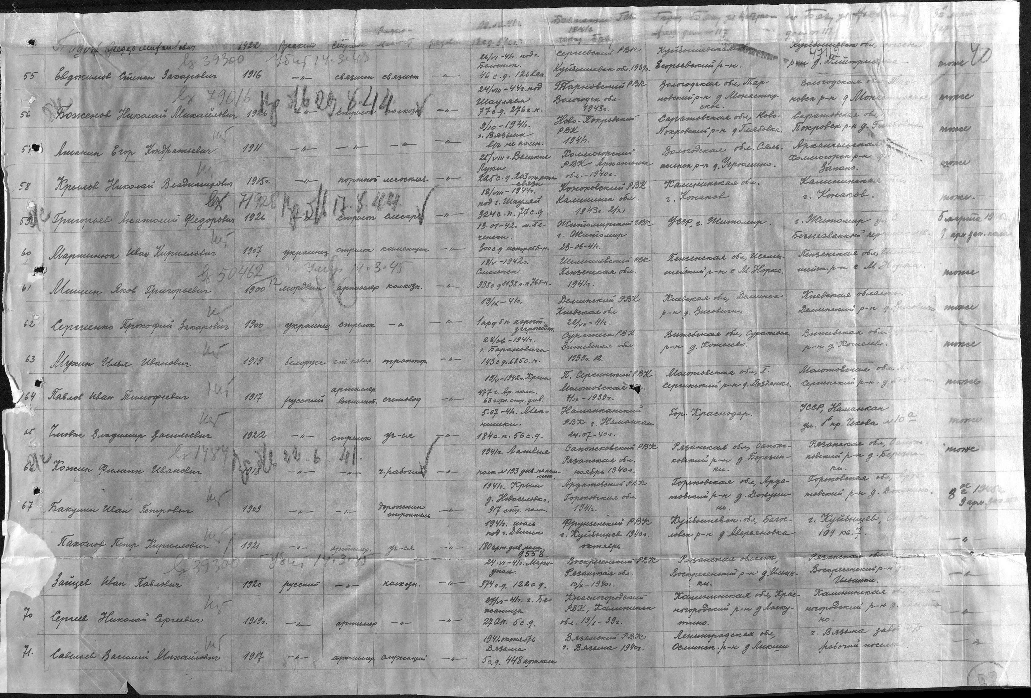 Добрый день. Спасибо огромное за помощь в поисках моего прадеда Ашанина Е.К. Хочу обратиться еще с одним вопросом. В Смоленской обл. названа школа им. Бабикова Михаила Васильевича он был ефрейтором пограничных войск погиб 8 апреля 1942 года в заполярье 82 сводной заставы. 2 августа 1946г. по приказу МВД №307 его именем была названа застава. Для того чтобы нам изготовить мемориальную доску для этой школы, мы нигде не можем найти число и месяц рождения. Он родился деревня Зюзьки ранее Руднянского района, сейчас Краснинского района Смоленской обл. и здесь никаких данных о дате рождения не найдено. Помогите пожалуйста или подскажите к каким поисковикам можно обратиться за помощью. Заранее спасибо