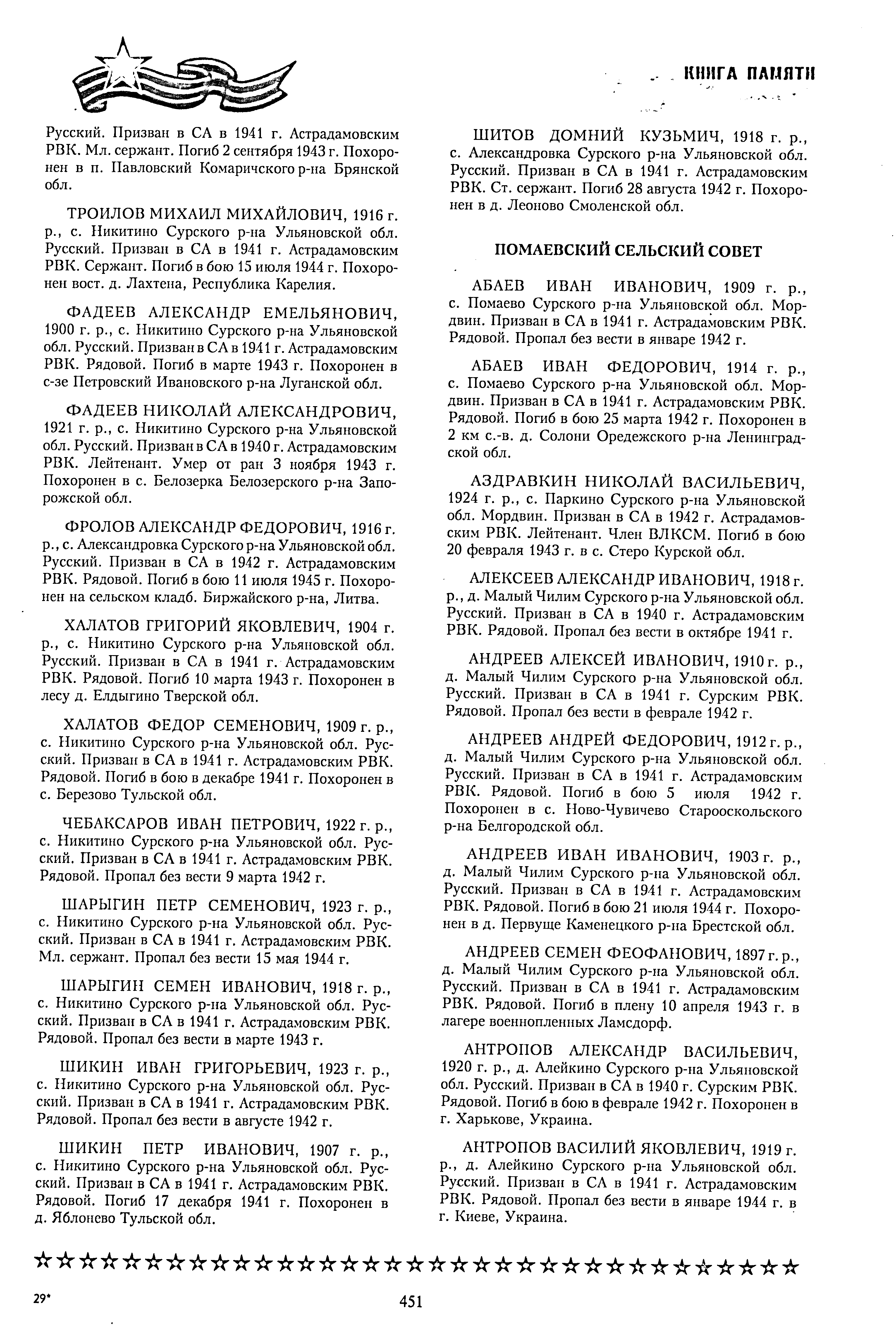 Исходные данные: Халатов Федор Семенович,1909г.р. - Книга памяти. Ульяновская область. Том 6. Он призывался из этой области? | ||||
