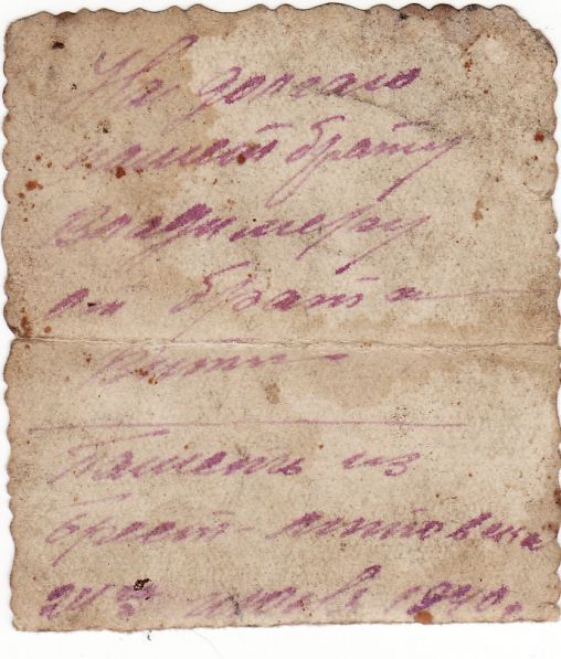 Надпись на фото: "Привет из Брест-Литовска. Крепость. Наилучшему другу Петю Емельяновичу Кишковичу от Виктора Алексеевича Медведева. Март 1941 года. Подпись" | ||||