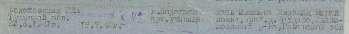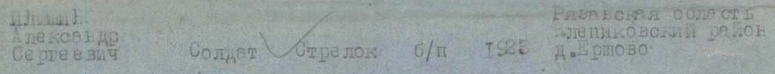 Призывался в Подольское артиллерийское училище. Его вообще нет в Книгах Памяти ни по месту рождения (Рязанская область), ни по месту призыва (Тульская область) | ||||||||||