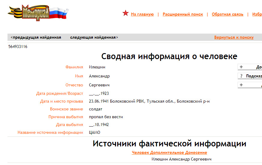 Куренков Виктор Иванович: Виктор Иванович, а кто остальные люди. Я так понял, что этого захоронения нет в ОБД "Мемориал".Вполне возможно, что на этом сельском кладбище (с. Ильинское) перезахоронили в 1972 году останки Илюшина Александра Сергеевича, в числе найденных 5 останков курсантов ПАУ около дота Алешкина А.И. д. Сергеевка. С уважением, Валерий Попов | ||||||||||