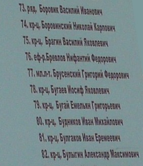 Новый стенд у меня есть до буквы К. Часть есть и на К, но Кроколенко там нет. И от бквы Т тоже есть. В старом стенде есть читаемые фамилии, но мало. Процентов 30. С уважением, Валерий Попов | ||||