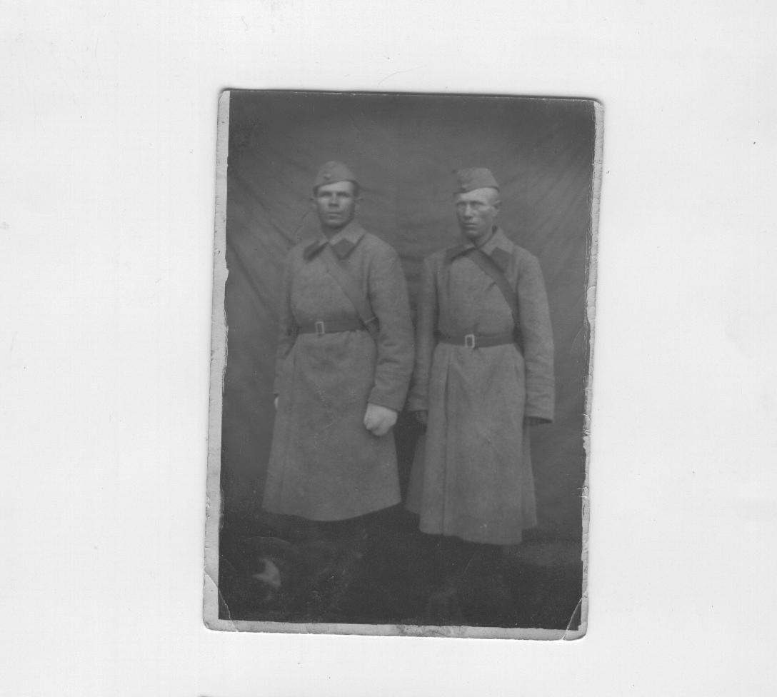 было одно письмо от него , где в сентябре, или октябре, вот с этими фотографиями, он и сослуживец, бабушка не помнит точно, но вроде как речь шла, что Москву идем защищать, и про какую то речку