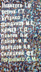 Куренков Виктор Иванович: Валерий, учетная карточка захоронения есть? Горбачево Плавского района есть. Но там еще нет Гордиенко, как и всех людей с этой плиты. Но других я вычислил. Их видимо еще не внесли. А вот с Гордиенко С. М. возникли проблемы. С уважением, Валерий Попов | ||||||||