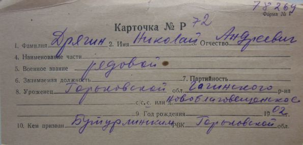 Карточка приведенная в посте № 5, она аж 1961 года. Искать Дрягина можно и в Тульской области. С уважением, Валерий Попов | ||||