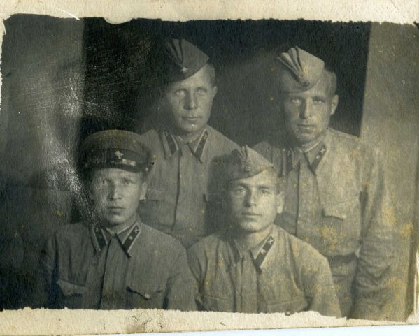 Валерий, спасибо. Этот снимок после принятия присяги. Курсанты во главе (в центре)с лейтенантом. Видимо он их командир взвода. На петлицах у курсантов прочитал ПАУ.У курсантов на ремнях курсантские пряжки. Через месяц многие из них погибнут при обороне Москвы. Татьяна Николаевна. Олег писал -справа - Кузнецов Евгений Иванович - преподаватели Ухоловского р-на Рязанской обл. Надо попробоваь установить судьбу - Кузнецов Евгений Иванович | ||||