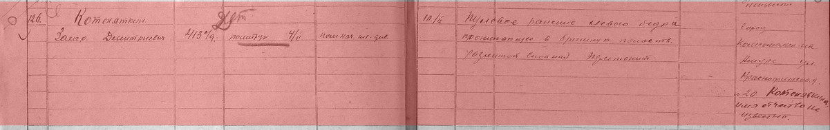 Сообщений: 0 | Информация из медицинского документа Фамилия Котеняткин Имя Захар Отчество Дмитриевич Последнее место службы 413 сд Воинское звание политрук Причина выбытия умер от ран Дата выбытия 10.02.1942 Госпиталь 180 ППГ Название источника информации ЦАМО Номер фонда источника информации 58 Номер описи источника информации А-83627 Номер дела источника информации 619 Места захоронения нет Котеняткина, ул. Краснофлотская д. 20 |
