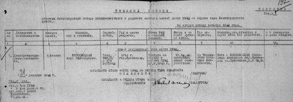Донесения о безвозвратных потерях Тип донесения Донесения о безвозвратных потерях Дата донесения 24.12.1942 Название части орг.-строевой отдел ГУВВ НКВД |