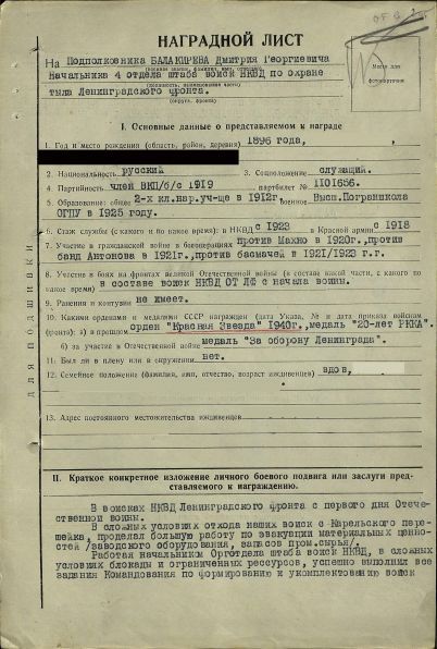 Наградной лист на подполковника Балакирева Дмитрия Георгиевича. Описание боев. |
