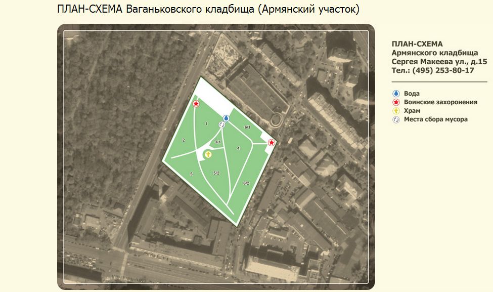 Первоначально предполагалось шестое захоронение на некоем Армянском кладбище. Однако выяснилось, что под этим названием скорее всего скрывается Армянский участок Ваганьковского кладбища. Смотрите сканы. С уважением, Валерий Попов | ||||||||||