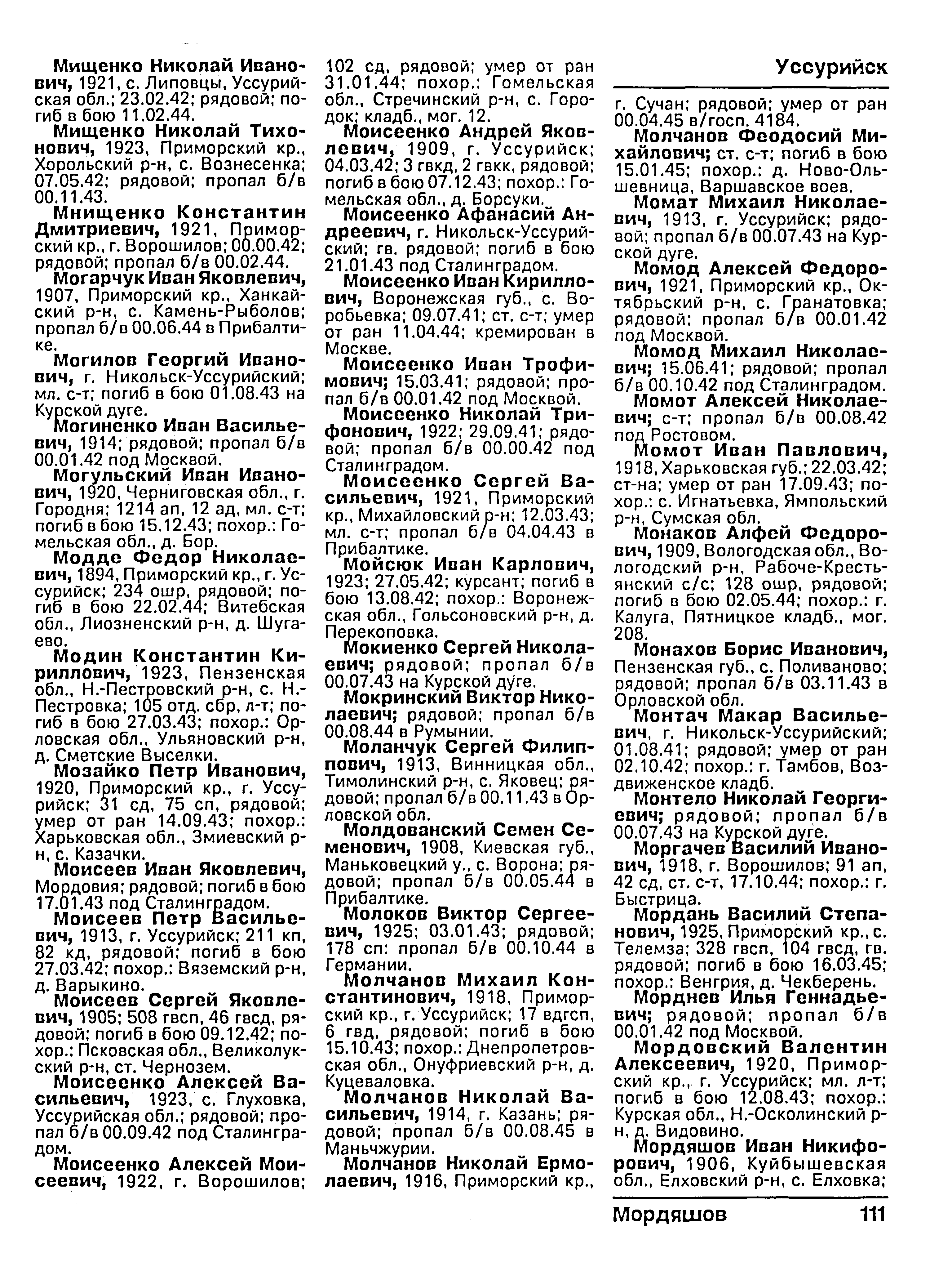 Информация из Книги Памяти Фамилия МОДИН Имя Константин Отчество Кириллович Дата рождения/Возраст __.__.1923 Дата выбытия 27.03.1943 Название источника информации Книга памяти. Приморский край. Том 3 Прикрепленные файлы: