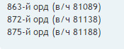 863 отдельный радиодивизион « Осназ » 2.6.43-11.5.45 872 отдельный радиодивизион « Осназ » 7.6.43-9.5.45 875 отдельный радиодивизион « Осназ » 10.6.43-11.5.45 9.8.45-3.9.45 как вам такая информация соответсвует в/ч81188 Редактировалось: 1 раз (Последний: 26 марта 2015 в 02:00) | ||||