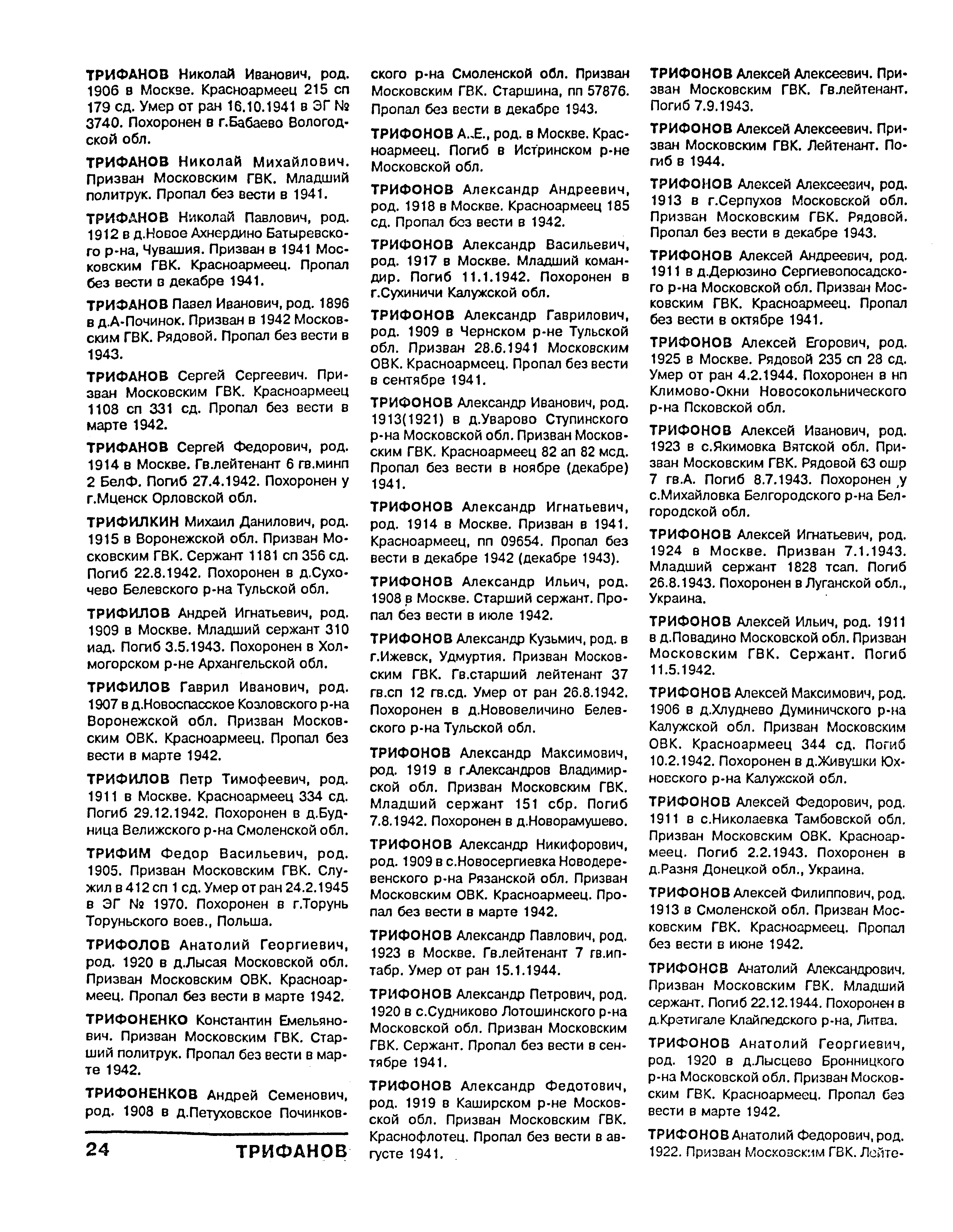 Елена, прошу извинить меня за описку в написании первой буквы отчества Трифонова Александра Кузьмича. В приведенных ссылках отчество указано верно как и все остальные данные. |