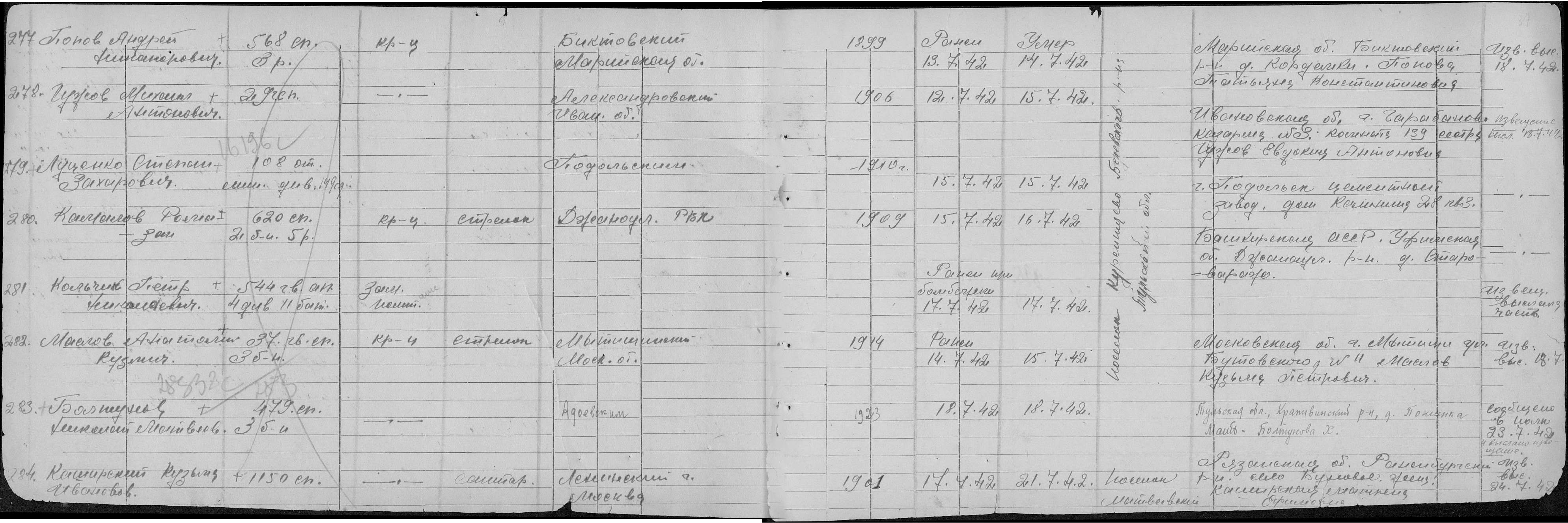 А вот другой документ того же МСБ. Ленгунов Иван Кондратьевич и Левошин Иван Ефимович умирают 27. 07. 1942 и снова В КУРЕНТЯЕВРО. Прикрепленные файлы: