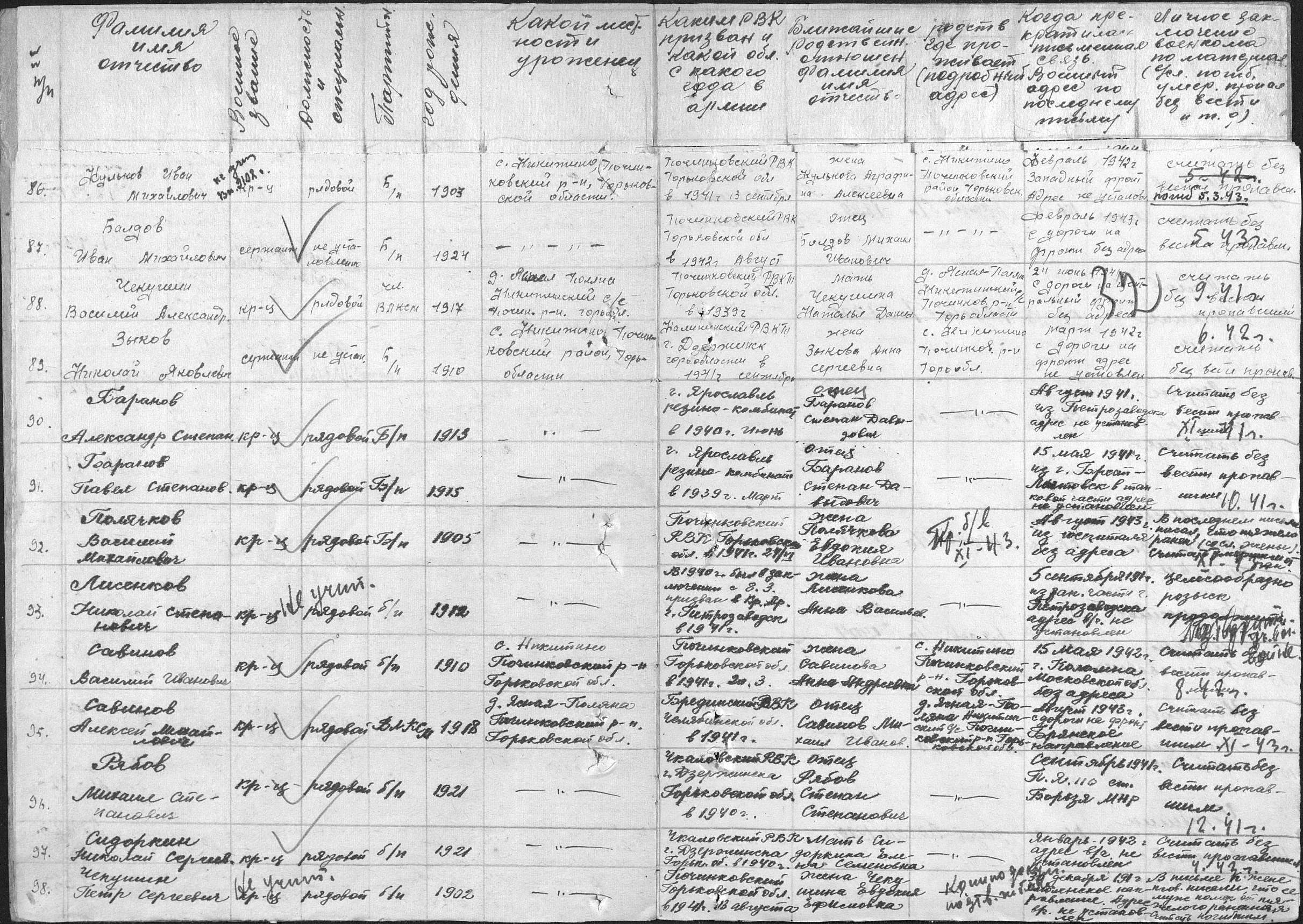 А вот это донесение на ЧеПУШКина Петра Сергеевича, красноармейца 324 СД. Правда тут еле видно и он пропал без вести, но деревня читается как Ясная либо Лесная Поляна ( Полянка ), Горьковской области.