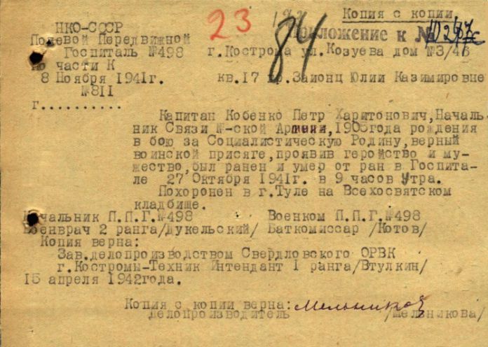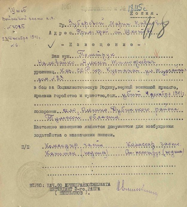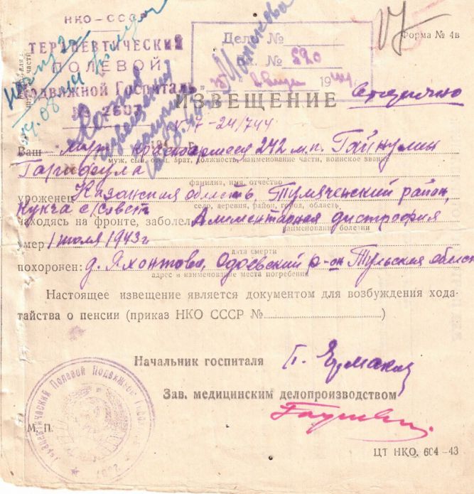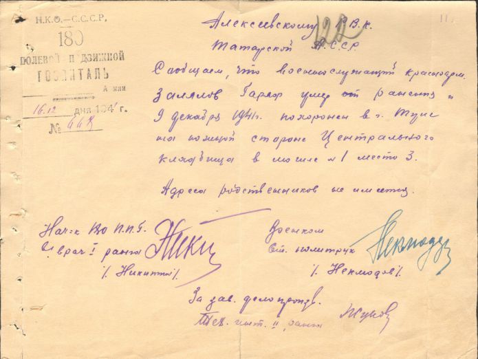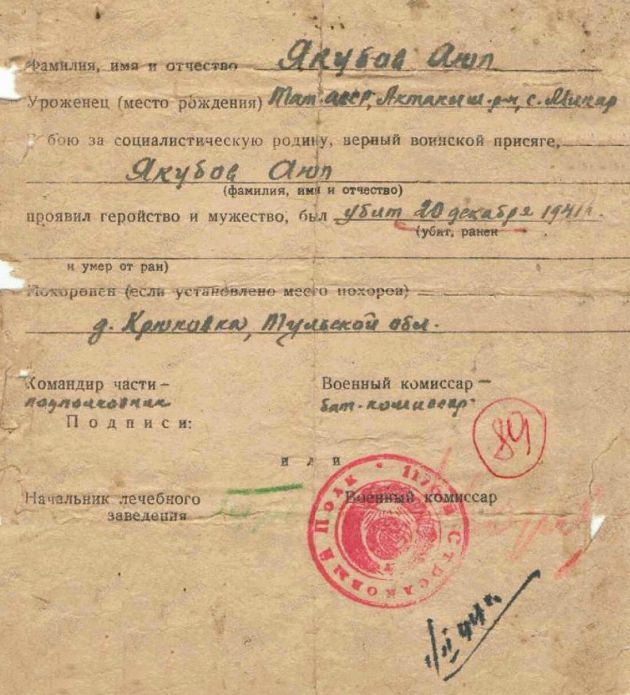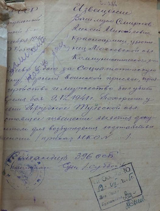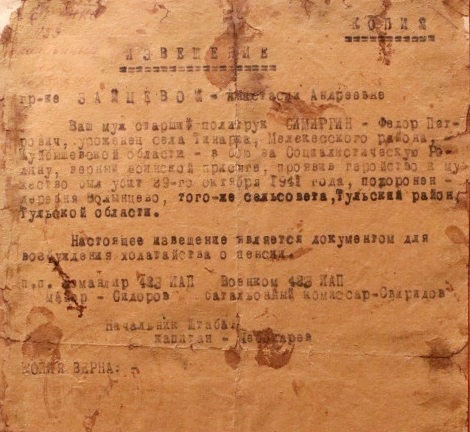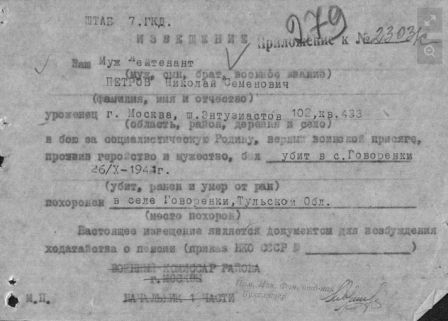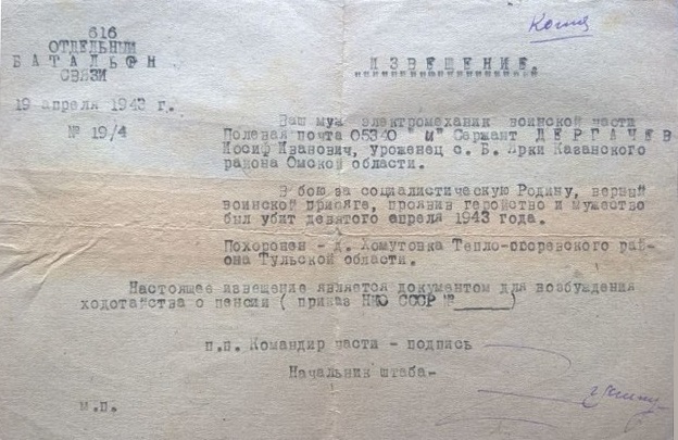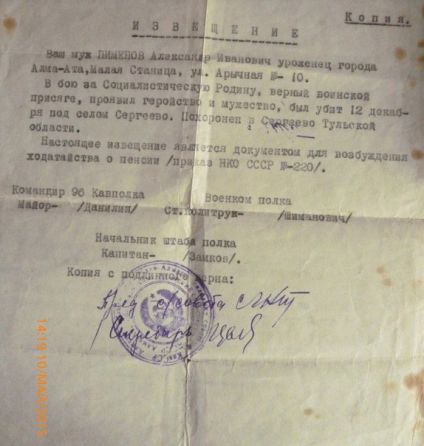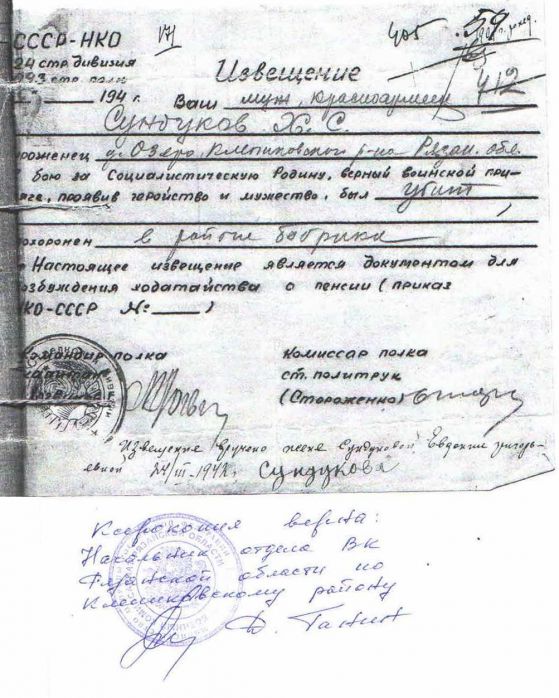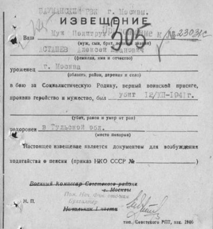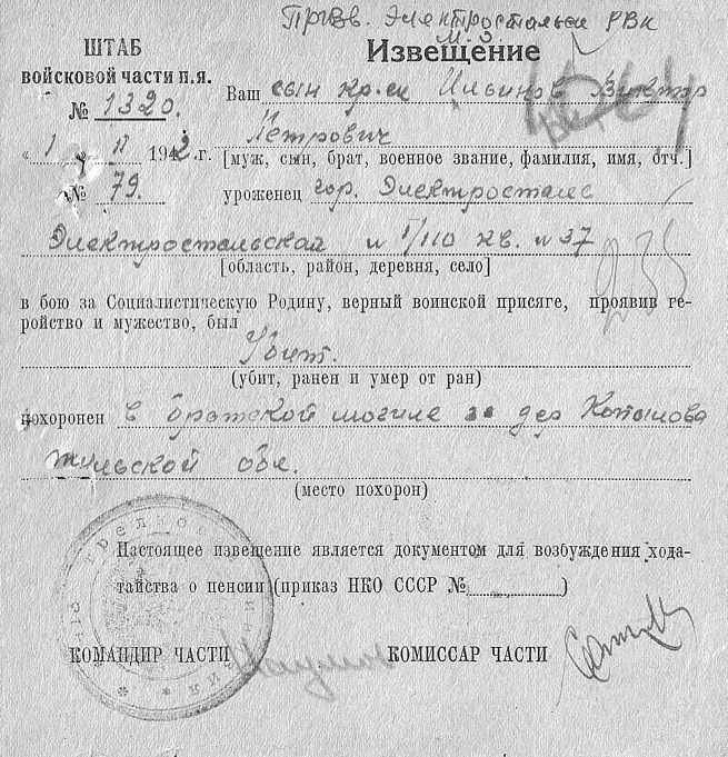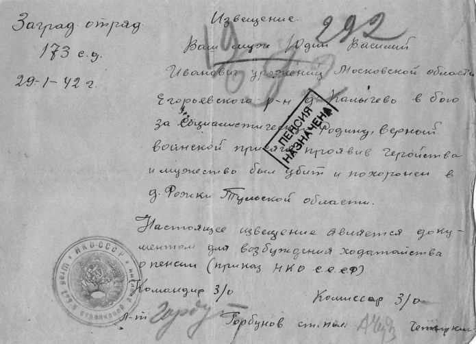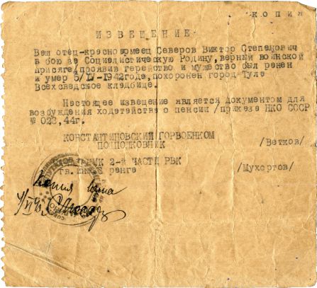 Извещения по воинам погибшим в Ясногорском районе