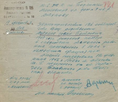 Извещения высланные на людей погибших в Плавском районе